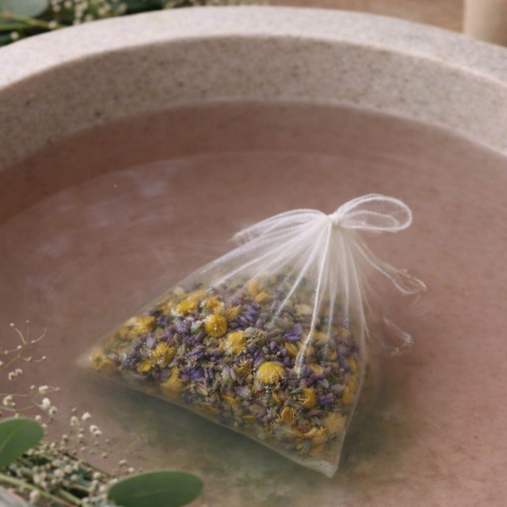 How to enjoy: Pre-steep the herbs in hot water for 5–10 minutes in a bowl, then pour the infusion into your warm bathtub. For a lighter infusion, simply place the steeping bag directly into the tub.
